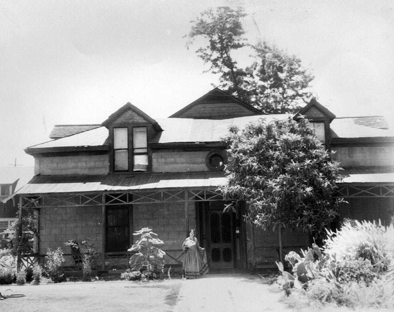 Built by Ramon Figueroa for his wife Guadalupe around 1835, the house served as the residence for a number of pioneer families, including a local German brewer. [xii] In the 1890s, mining engineer C. C. Thomas enlarged the house, adding an enormous veranda, possibly designed by local architect, Sumner P. Hunt.[xiii] After Thomas’ death in 1900, the adobe was subdivided and turned into a rooming house.[xiv] When Ana moved in, the house “had fallen into disuse and tramps were sleeping in it.”[xv]