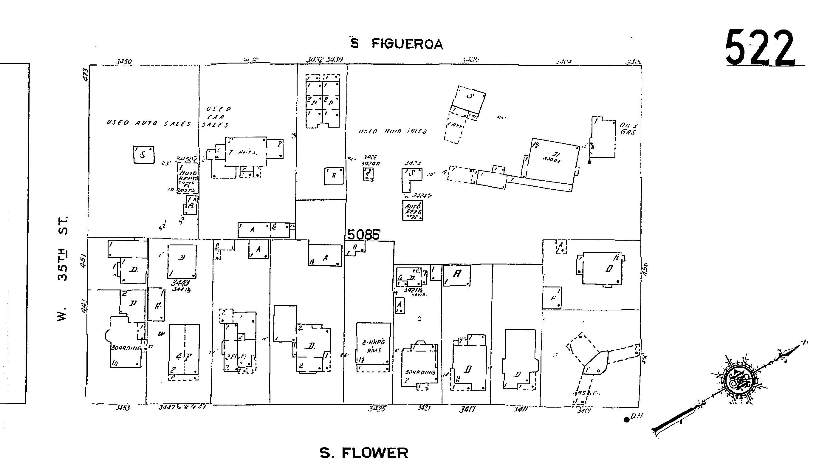 Figure 4: By 1955, auto related industries including several used-car lots and a gas station surround the adobe