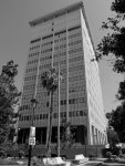 - Aerial view from 1947 showing the International Building between Los Angeles City Hall and the Federal Court House, from the Water and Power Associates website.